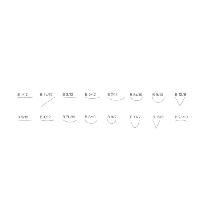 Another category worth exploring is their selection of palm and lino tools. These are almost all interchangeable as palm tools, but technically speaking, the lino tools were originally designed for carving linoleum blocks. The palm tools have the letter B in front of the number, the Lino the letter L. See the images below as a reference: