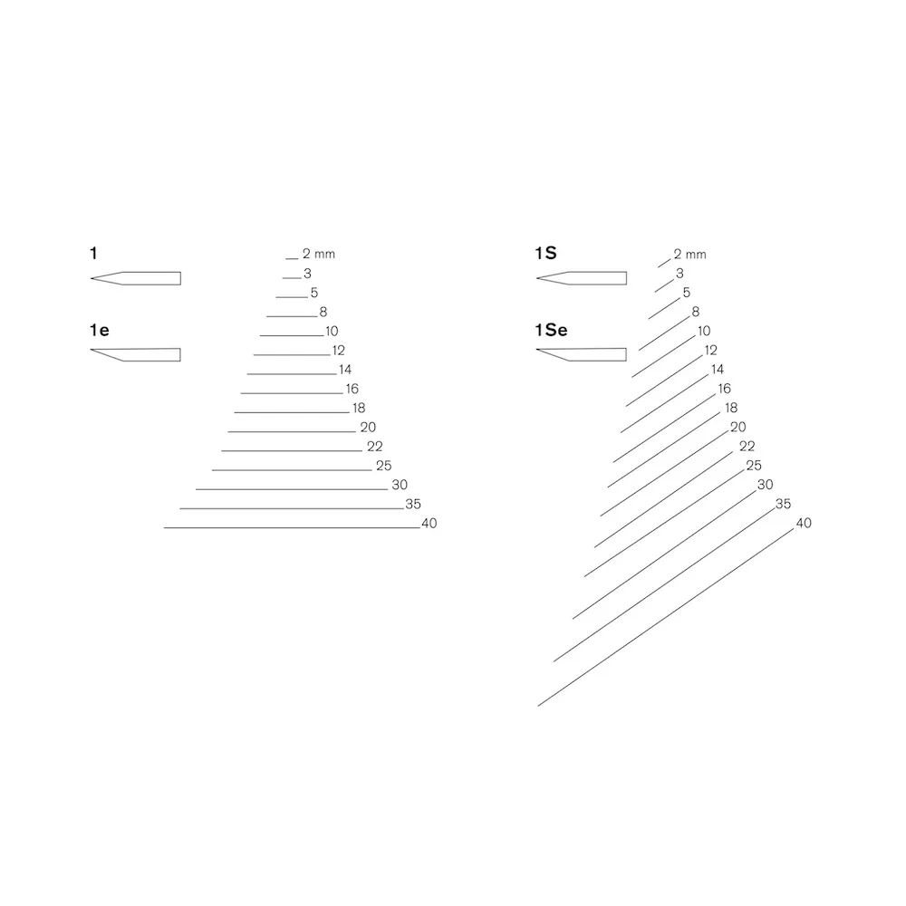 The #1 Double Bevel Straight Chisel by Pfeil Swiss Made (as shown above), #1e Single Bevel Straight Chisels, #1S Double Bevel Skew Chisels, and #1Se Single Bevel Skew Chisels are all similar profiles. Refer to the illustration to compare and decide what works for you. The choice of single or double bevel is largely a matter of personal preference.