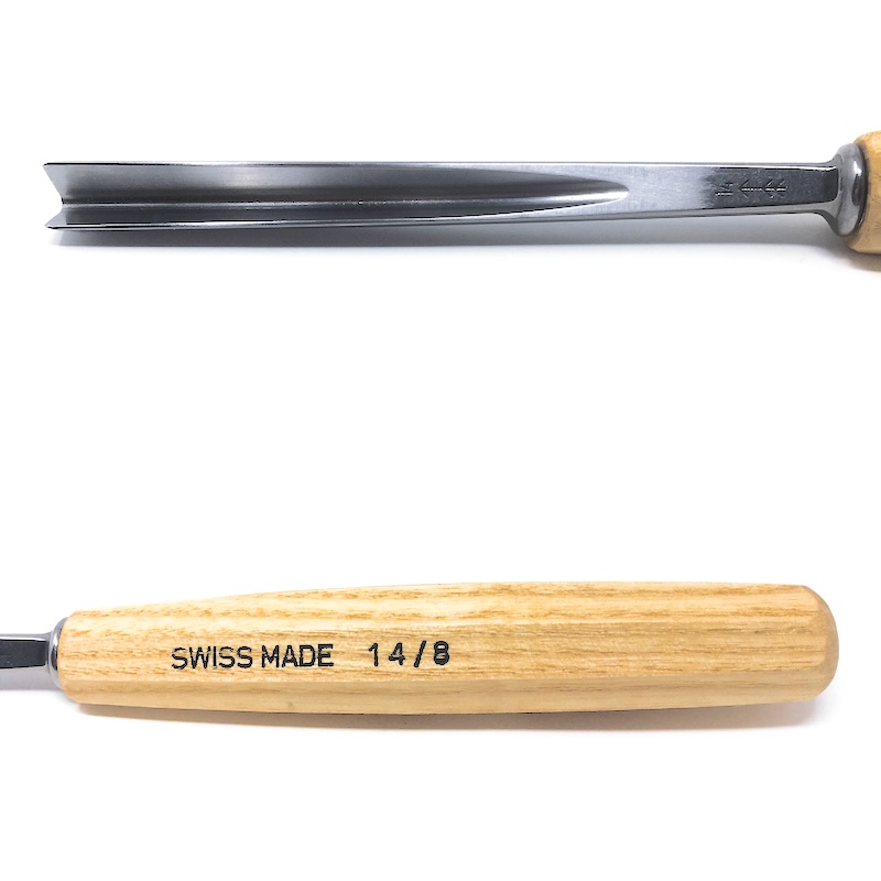 Straight V-parting tools are especially suited for ornamentation, sculpting figures, and carving lettering. The No. 14 tools feature a 55 degree, slightly rounded base and a straight profile on the sides of the blade.