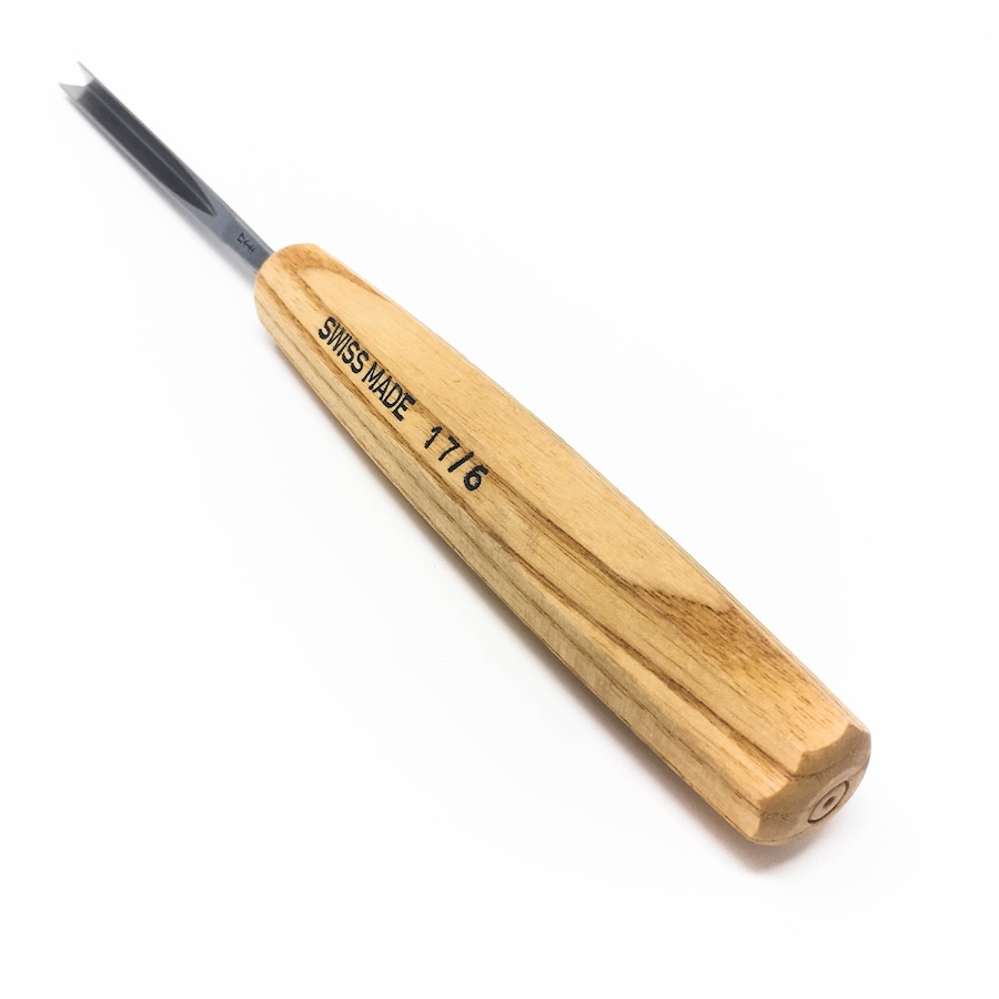 This gouge acts like two tools in one: A sharp angle at the base with sides swept like a No. 2 tool. Ideal for carving lettering and ornamentation.