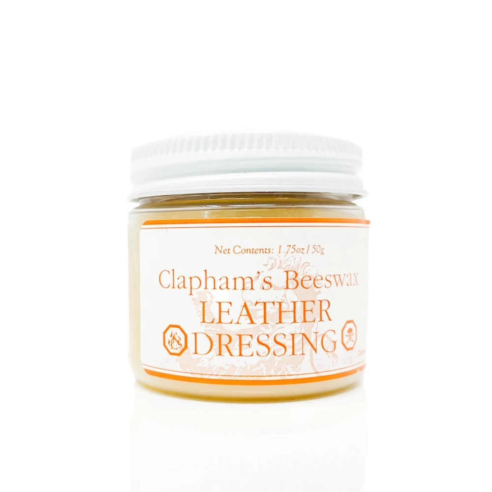 Clapham’s Beeswax Leather Dressing revitalizes leather by penetrating it to make it supple and water repellant. In addition to Clapham’s Canadian beeswax, which increases the leather’s water resistance, our leather dressing contains the natural by-products lanolin and neatsfoot oil, which are usually produced to heal the animal’s skin. So, naturally, Clapham’s Leather Dressing brings dry, dull, brittle and/or lifeless leather back to life! Even if the leather is dry, it will absorb a surprising amount of Leather Dressing.
