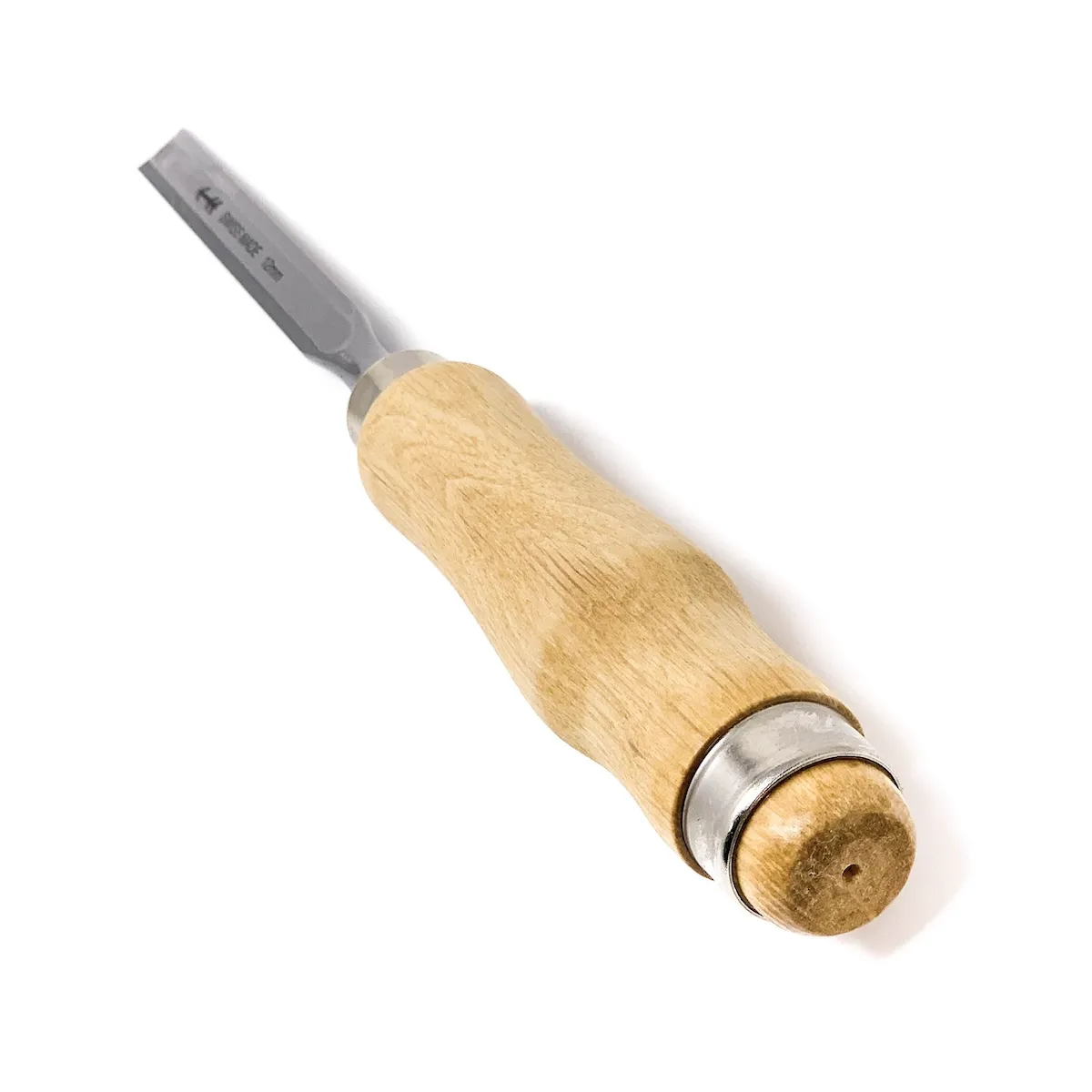 These bench chisels by Pfeil have a new comfortable handle design made of white beech with steel ferrules. Blade is chrome vanadium steel, finely honed and polished razor sharp. 25 degree bevel. In protective plastic pouch.