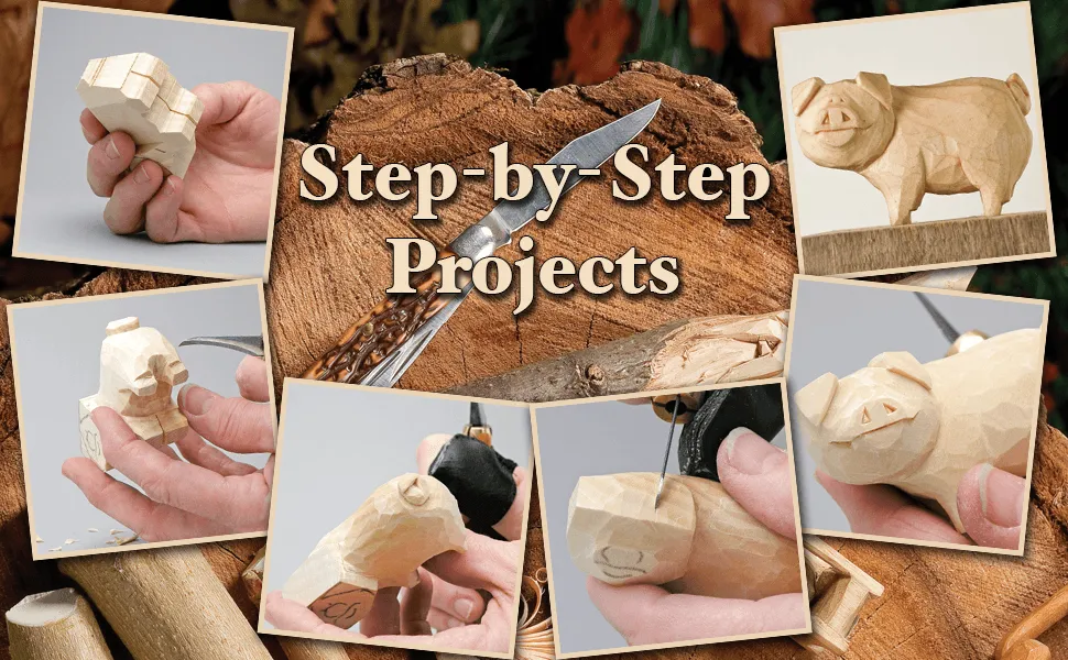 Features 24 easy projects to build confidence and teach fundamental carving techniques including: