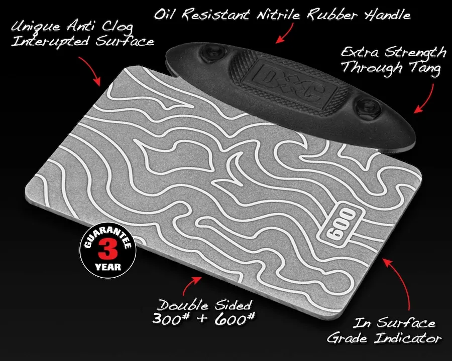 This striking new design helps draw the debris filled lubricant away from the abrasive surface of the Diamond Stone, unlike so many others.