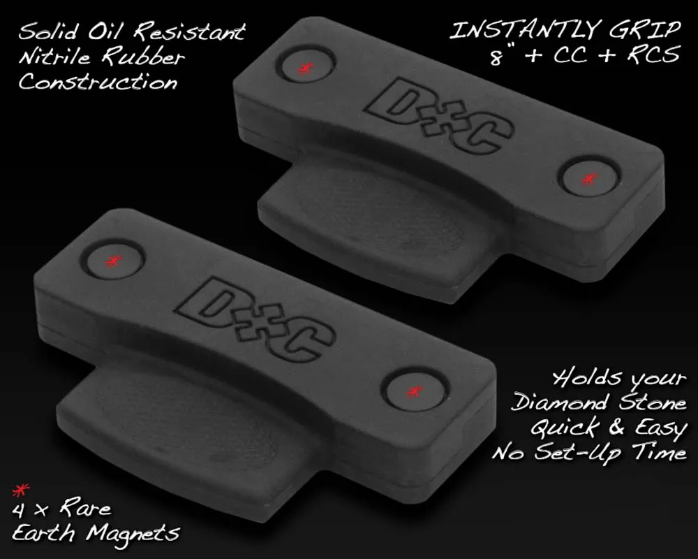 From a solid 8” bench stone to any old Credit Card diamond stone. The DSH’s rare earth magnets lock onto the underside of the stone providing instant grip between bench/work-surface and Diamond stone. OK so there is a piece of non slip mat that can do that. Except that the DC DSH (unlike the spongy mat) provides much needed clearance. So when you’re sharpening a knife, the DSH raises the sharpening surface so that the knife handle doesn’t hit the surface that you’re working on.