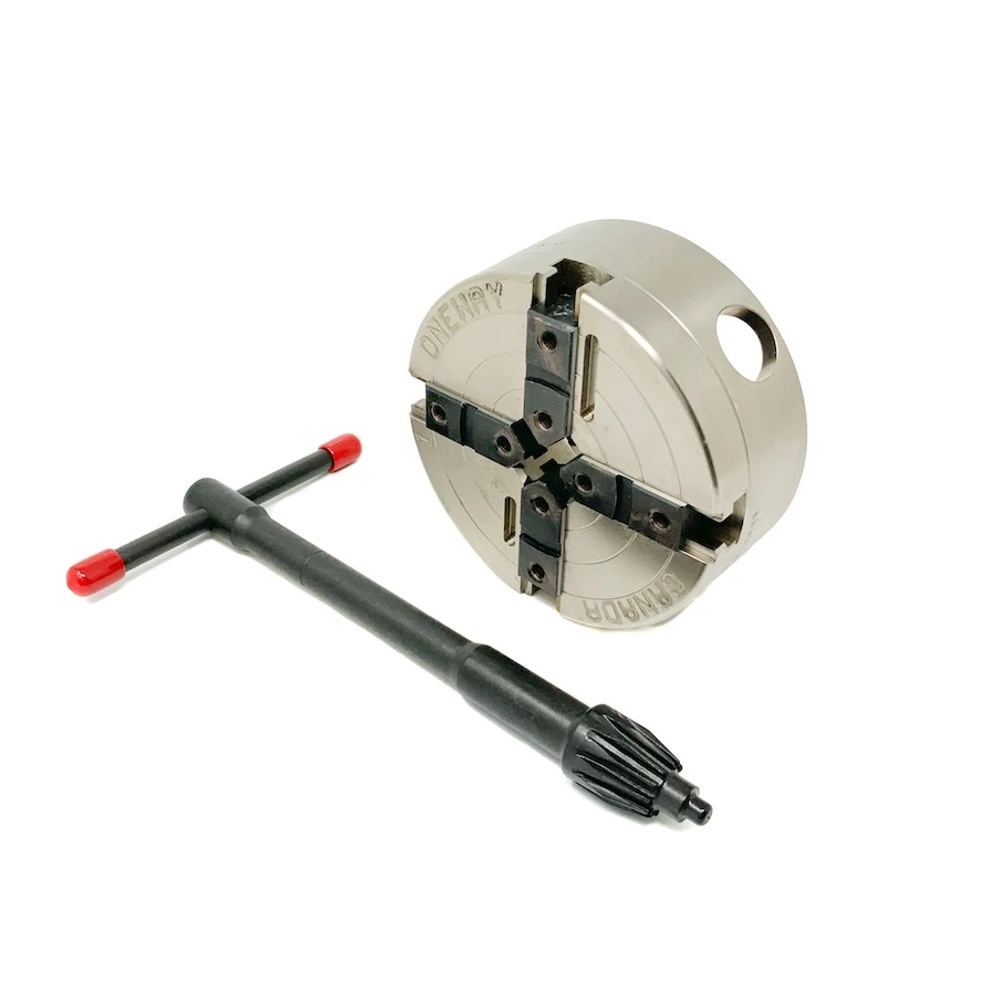 The body is precision machined. Electroless nickel plating provides a hard wearing surface for base jaws and scroll while giving the added bonus of providing excellent corrosion resistance.