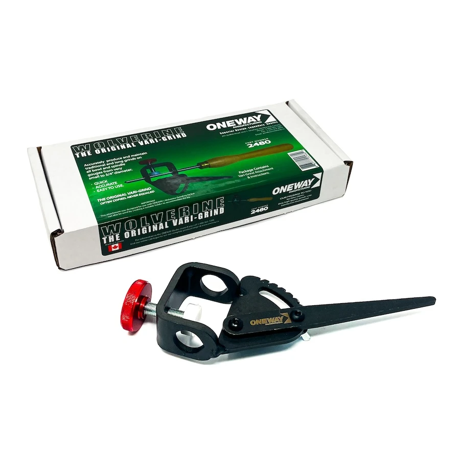The Wolverine Vari-Grind will properly shape and maintain the edge on standard bowl gouges, the modern side grind (also known as the Ellsworth grind, Liam O’Neil, or Irish grind), and the traditional fingernail shape for spindle work detailing. ONEWAY has spent considerable time and effort to develop a system which will consistently produce sharp, repeatable geometries on turning tools for the wood turner.