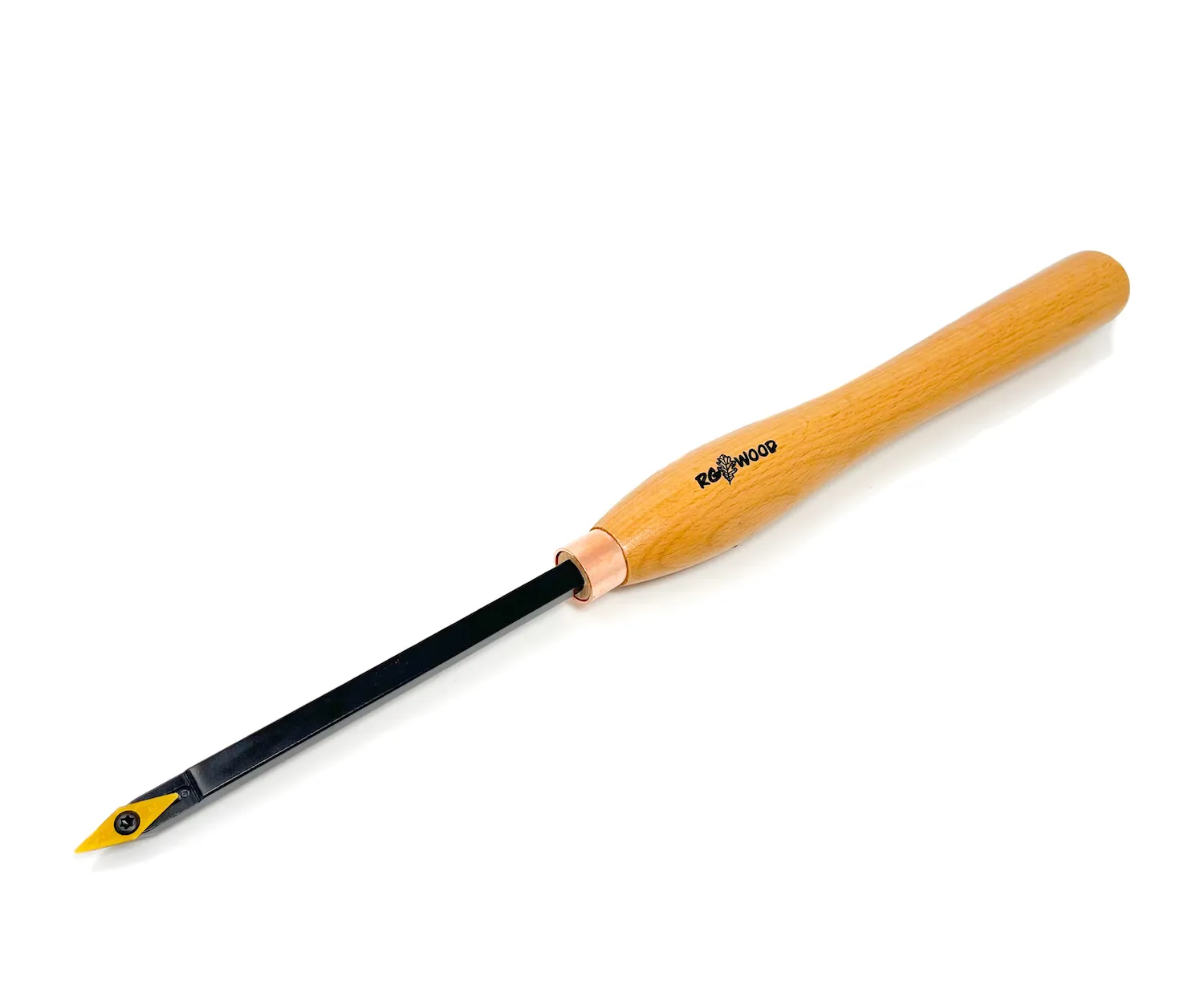 Many beginner turners prefer using carbide tools to traditional gouges as they’re easier to use. The flat bottom of the tool shank keeps the cutter level, and the scraping geometry of the cutter helps prevent against the catches that may frighten users of gouges or skew chisels.