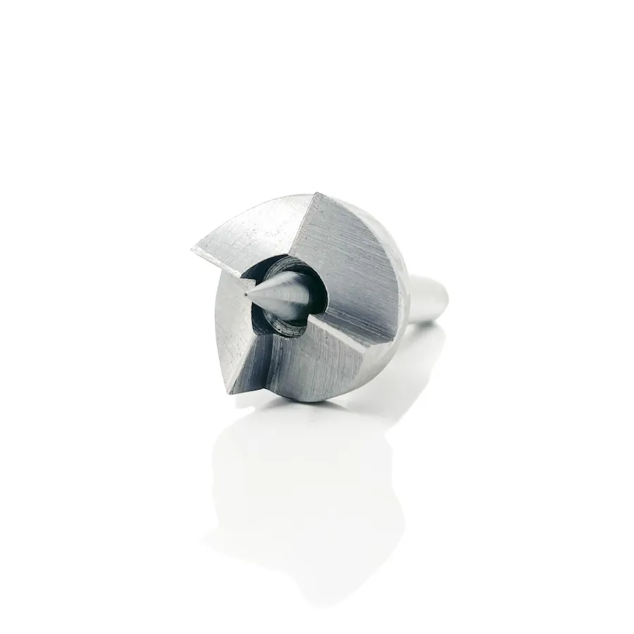 For better stability, you may need to drill a small pilot hole in the center of your workpiece to accommodate the point of the spur.