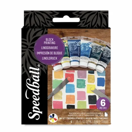 Speedball creates Water Soluble Block Printing Ink from pigments that they grind and mill to the perfect consistency for block/relief printing. The Speedball Water-Soluble Block Printing Inks print in bold colors and dry to a rich, satiny finish. You can achieve spectacular results thanks to their excellent tack, which ensures even coverage and consistency. Enjoy the ease of printing with linoleum, wood or soft block surfaces, flexible printing plates, or polyfoam.
