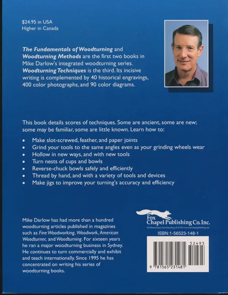 The Fundamentals of Woodturning and Woodturning Methods are the first two books in Mike Darlow’s integrated woodturning series. Woodturning Techniques is the third. Its incisive writing is complemented by 40 historical engravings, 400 color photographs, and 90 color diagrams. This book details scores of techniques. Some are ancient, some are new; some may be familiar, some are little known.